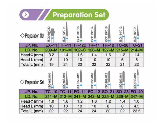 Dental Diamond FG High Speed Burs Kit -- Preparation Set
