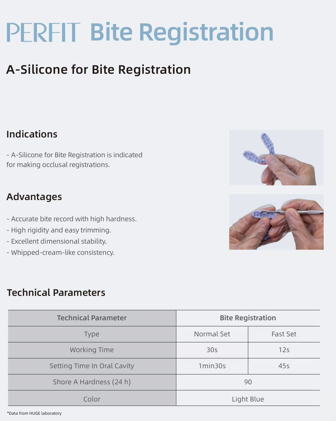 - Accurate bite record with high hardness.